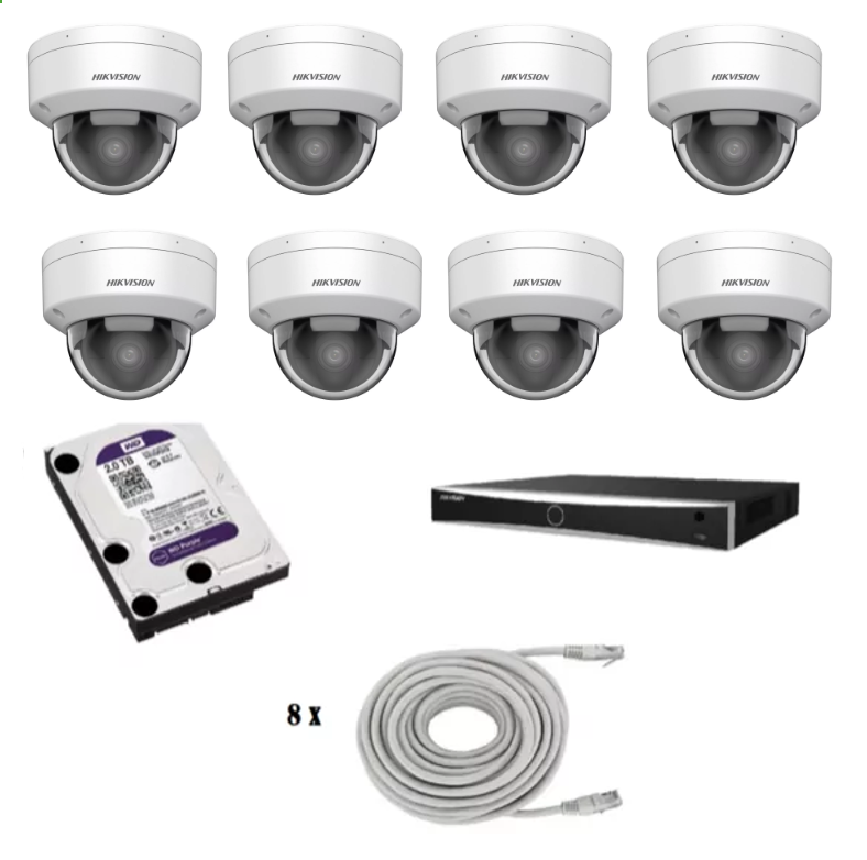 AanbiedingHikvision beveiligingscamera set met 8 Hikvision DS-2CD2186G2H-ISU wit