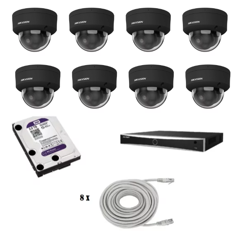 AanbiedingHikvision beveiligingscamera set met 8 Hikvision DS-2CD2186G2H-ISU zwart