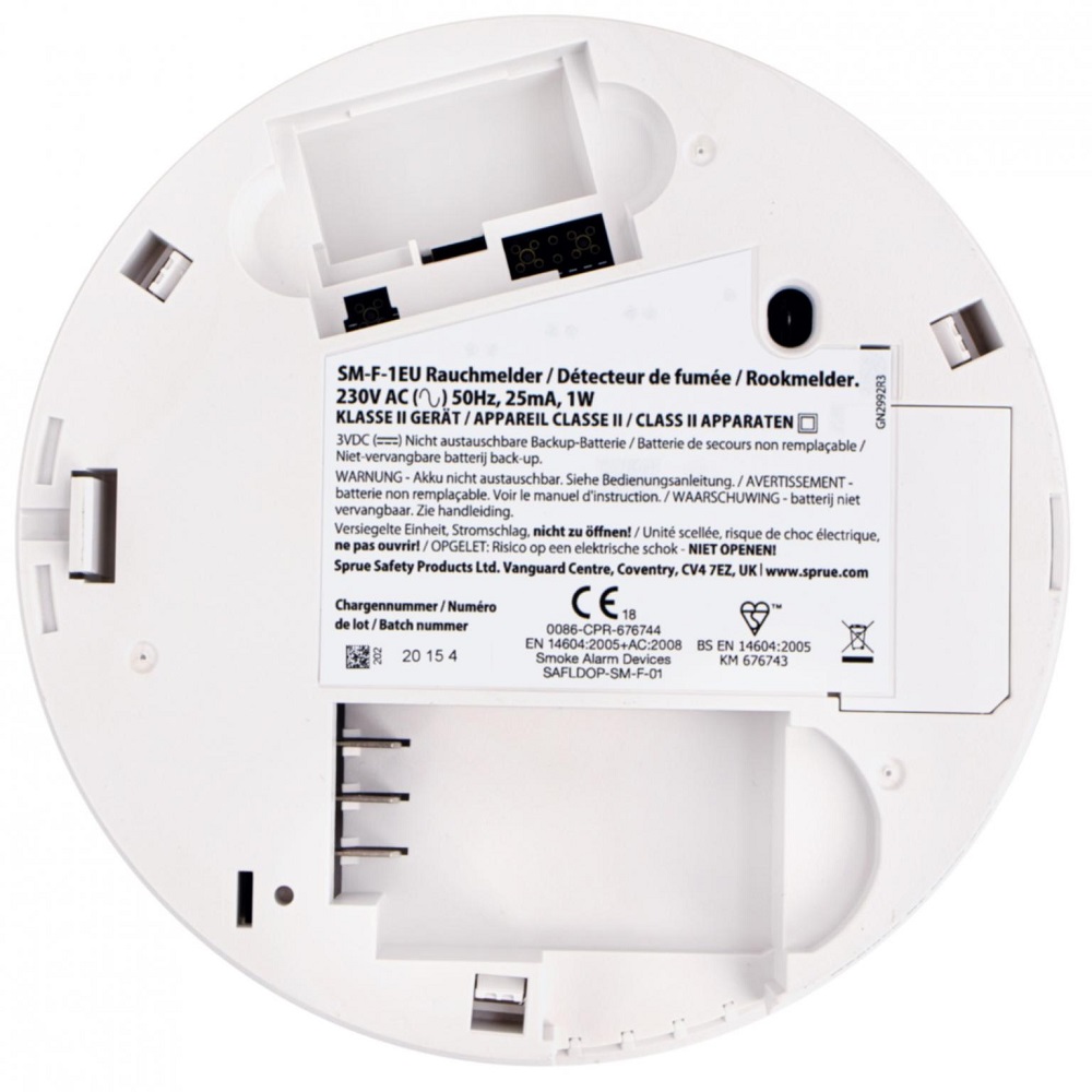 Een van de belangrijkste kenmerken van de FireAngel SM-F-1EU is de 230V AC-voeding, waardoor het direct kan worden aangesloten op het elektriciteitsnet. Dit zorgt voor een continue stroomtoevoer, waardoor de rookmelder altijd operationeel is. Bovendien heeft de rookmelder een10-jarige lithiumbatterij back-up, wat betekent dat het zelfs blijft werken tijdens stroomuitval.
