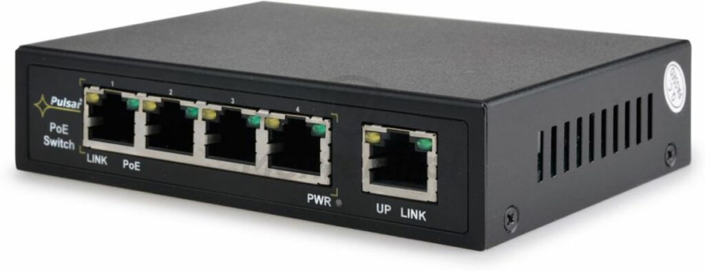 Met zijn vijf poorten, waarvan vier zijn uitgerust met Power over Ethernet Plus (PoE+), stelt de Pulsar S54 gebruikers in staat om zowel gegevens als stroom over dezelfde Ethernet-kabel te verzenden. Dit is vooral handig voor het aansluiten en voeden van IP-camera’s, telefoons, access points en andere PoE-compatibele apparaten zonder de noodzaak van afzonderlijke stroomkabels.